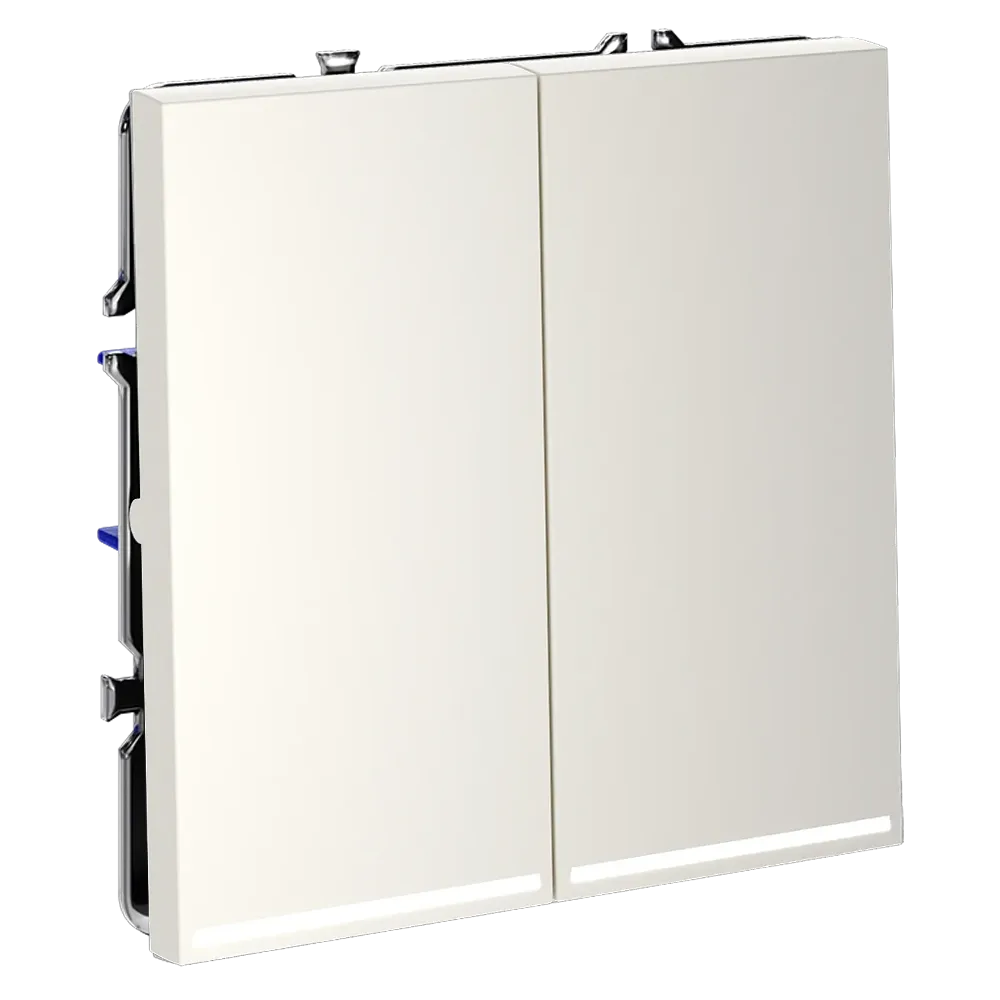 Каждая из двух клавиш работает как независимый проходной переключатель, позволяя управлять двумя световыми контурами (например, основным освещением и подсветкой) параллельно из разных мест. Это исключает необходимость возвращаться к первому выключателю и значительно повышает комфорт повседневного использования.